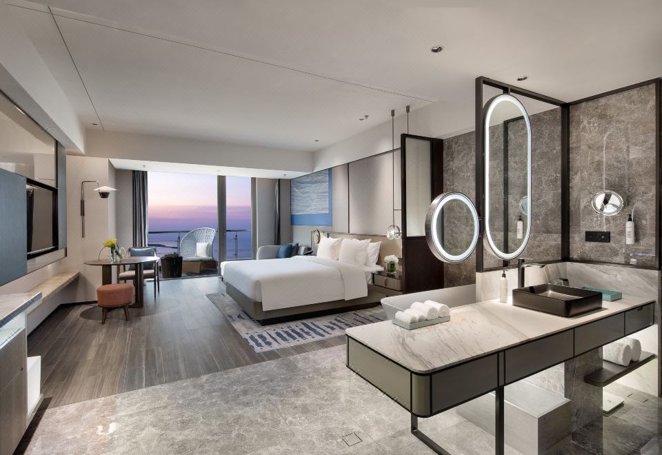 高级海景大床房(独立海景阳台+观海落地窗+Acca Kappa洗护用品+舒达床垫+浴缸)